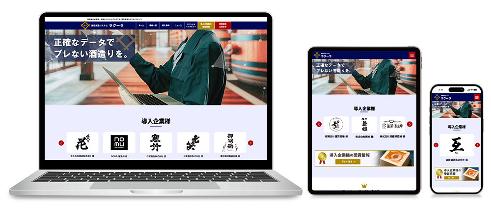 自社製品「ラクーラ」の紹介サイトでは、酒造支援アプリとしての魅力がしっかりと伝わるデザインを心がけました。